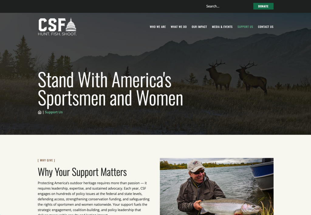 By focusing on both design and structure, the project balanced visual elevation with practical functionality. The updated platform gives the Congressional Sportsmen’s Foundation a scalable digital foundation, making it easier to communicate its mission, highlight programs, and maintain a robust library of policy and advocacy content as the organization continues to grow.